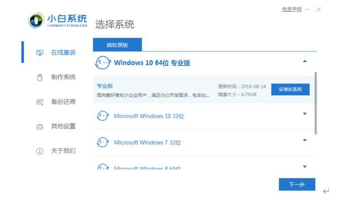小白一鍵重裝系統2018 一鍵式自動下載安裝系統,專業客服解答確保裝機無憂 xp/win7/win8/win10多種系統選擇,滿足您的需求 提供u盤啟動盤制作工具,u盤修復工具,裝機的好幫手 支持U盤裝系統,制作1個U盤,可永久裝N臺電腦