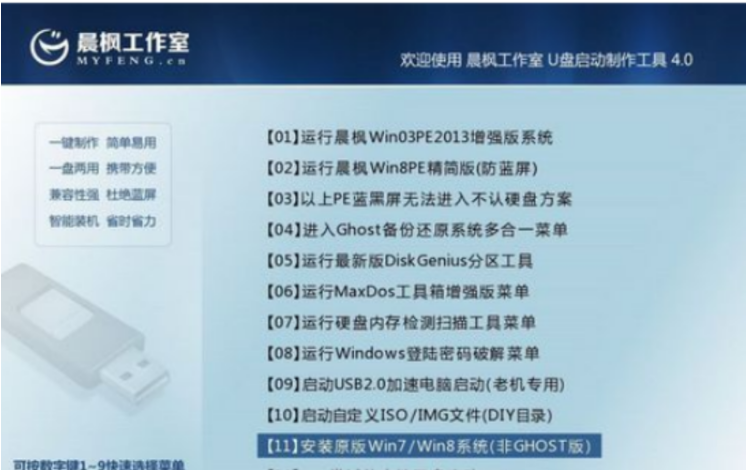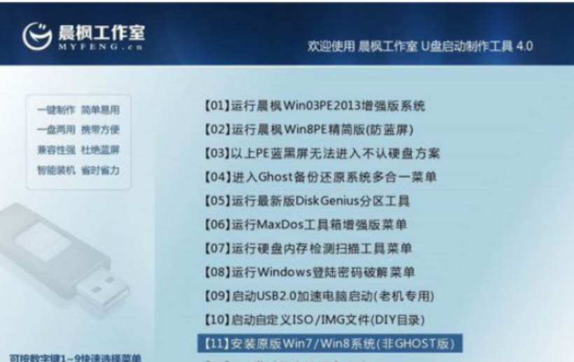 通過U盤來重裝系統不失為一種快捷且安全的方法,小編推薦大家可以嘗試一下這種重裝方法。下面小編就跟大家演示晨楓u盤啟動盤制作工具怎么重裝win7系統以及晨楓u盤啟動工具重裝win7方法步驟,相信通過以下的演示會讓你對u盤重裝系統有更進一步的了解。....
