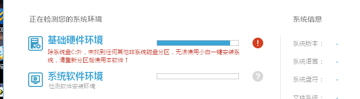個別用戶在使用小白一鍵重裝系統的時候遇到提示“除系統盤c外,未找到任何其他非系統盤分區,無法使用小白一鍵安裝系統,請出現分區后使用本軟件”,大家可能會覺得我電腦上明明就不知一個C盤還有其他的磁盤,怎么就會提示未發現其他分區呢。其實是這樣子的,因為一鍵重裝類軟件都只識別NTFS格式的分區,很多電腦原來的磁盤分區可能是FAT32格式,那么就會不被正常識別了。
