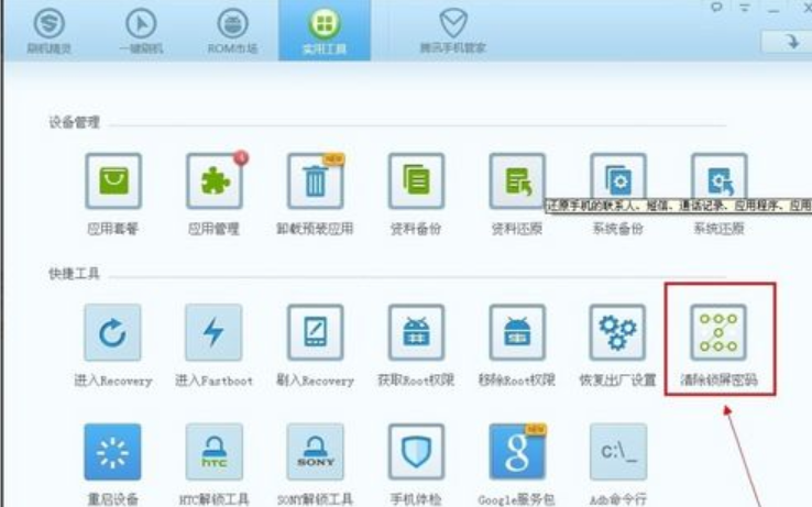 1,下載刷機精靈,打開鏈接手機,鏈接成功之后在刷機精靈頁面里面可以看到“實用工具”的選項,點擊此選項。