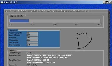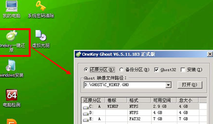 7、雙擊桌面上的“ONEKEY(一鍵還原)”圖標,程序會自動找到你剛放到U盤根目錄下的GHO文件