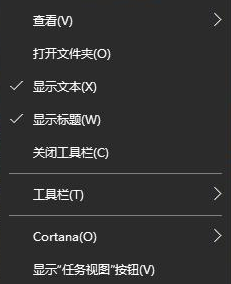 5、將鼠標移動到任務欄左側區域,右擊桌面下方的任務欄,取消勾選“顯示文本”和“顯示標題”即可。