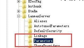 2、依次點擊HKEY_LOCAL_MACHINE\SYSTEM\CurrentControlSet\Services\LanmanServer\Parameters。