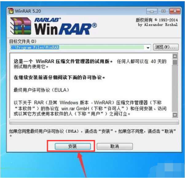 2.打開WinRAR軟件安裝界面,我們在頁面中點擊“安裝”選項。