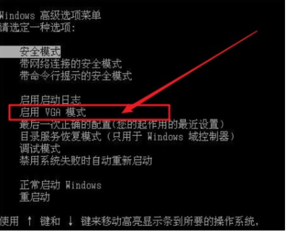 2、 然后,用上下鍵選中“啟用VGA模式”,按回車進入桌面。