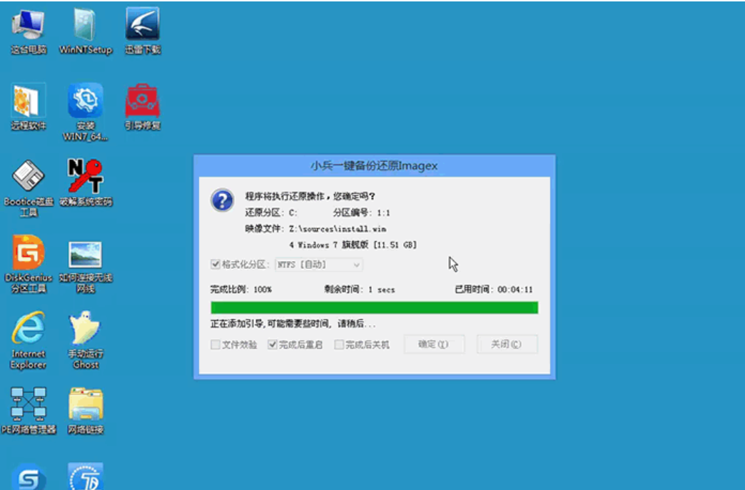 重小兵一鍵重裝在重裝系統后中途如果強制斷電進不了系統了后,也可以能過備用PE再一次進入PE進行重裝,保證電腦重裝出現意外情況下不會導致進不了系統。