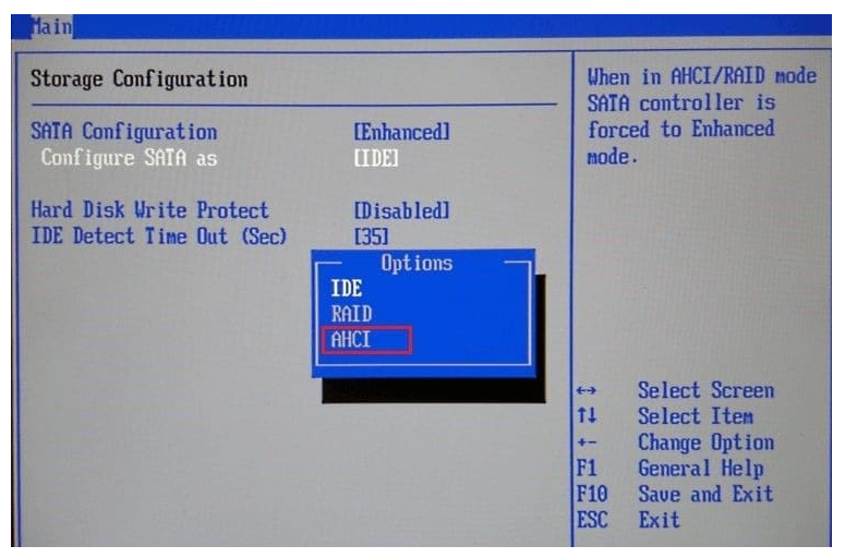 4、找到它后,您需要將設置更改為“AHCI”模式。