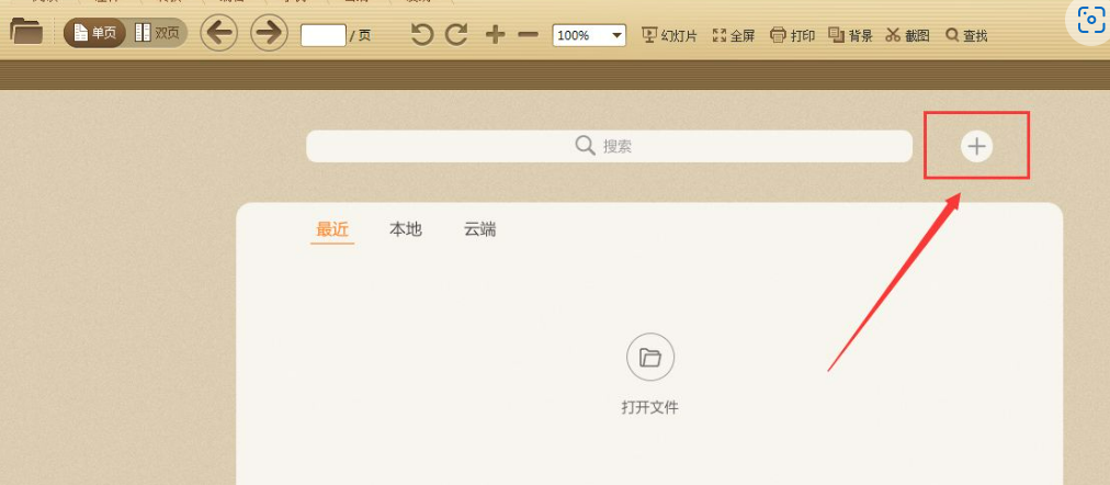 2、搜索輸入框后面的“+”并選擇PDF文件打開;