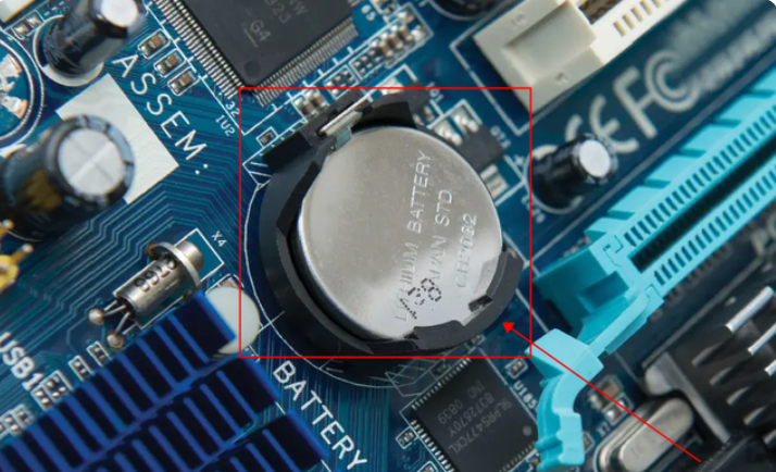 3、找到主板上面硬幣大小的電池,那個就是主機的CMOS電池,取下來停留幾分鐘以后,在重新安裝上去進行測試就可以。
