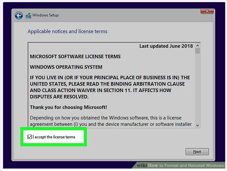 6、您可以在屏幕上閱讀許可條款。完成后,單擊“我同意許可條款”旁邊的復選框,然后單擊下一步。