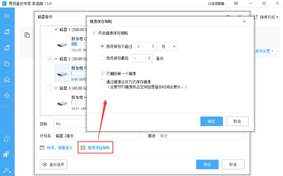 4、設置“鏡像保留策略”,定時清理之前的備份鏡像文件。