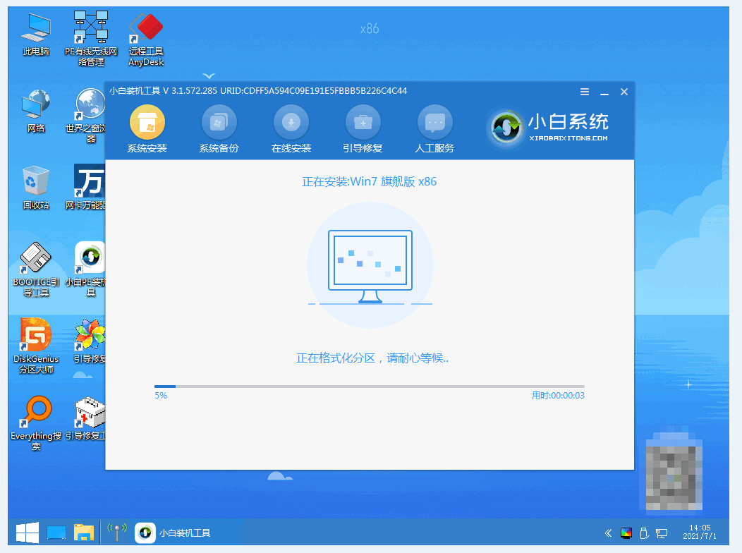 6、進入pe系統后,進入小白軟件,隨后等待軟件安裝系統。