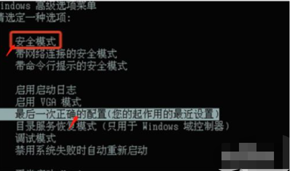 1、首先我們開機按F8,分別可以嘗試選擇“安全模式”或者“最后一次正確配置”進入系統。