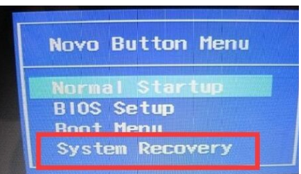 3、這時就會出現一個選項窗口,我們將用方向鍵單擊最后一個系統恢復按鈕即可。