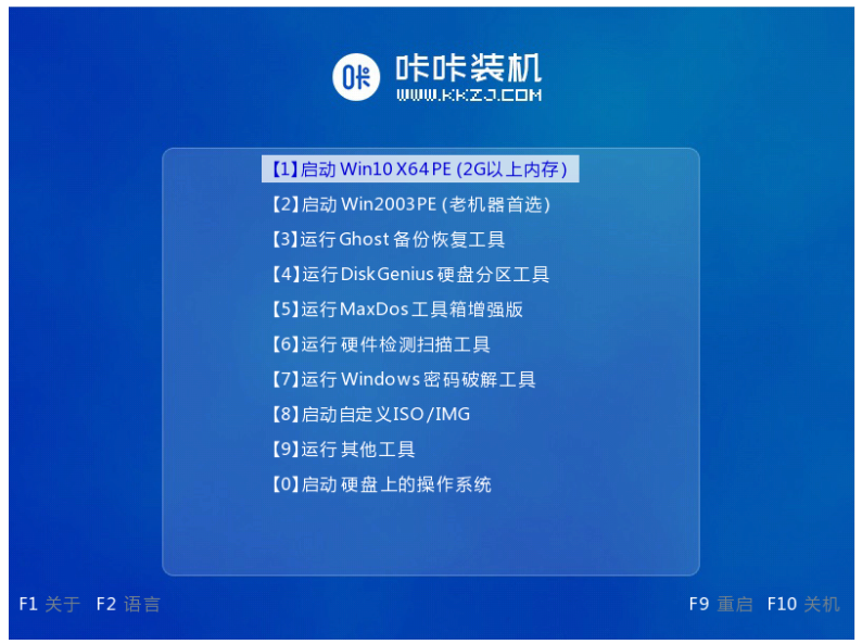 5、隨后將制作好的U盤插到需要重裝系統的電腦上,隨后啟動電腦,通過鍵盤方向鍵選擇第一項,然后回車進入pe系統。
