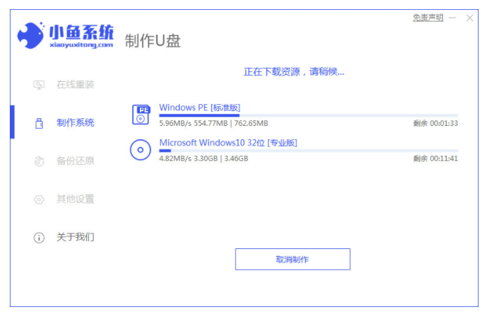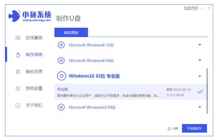 1、在正常的電腦中,將u盤入,下載一個“小魚一鍵重裝系統”工具并打開,點擊制作系統,開始制作。