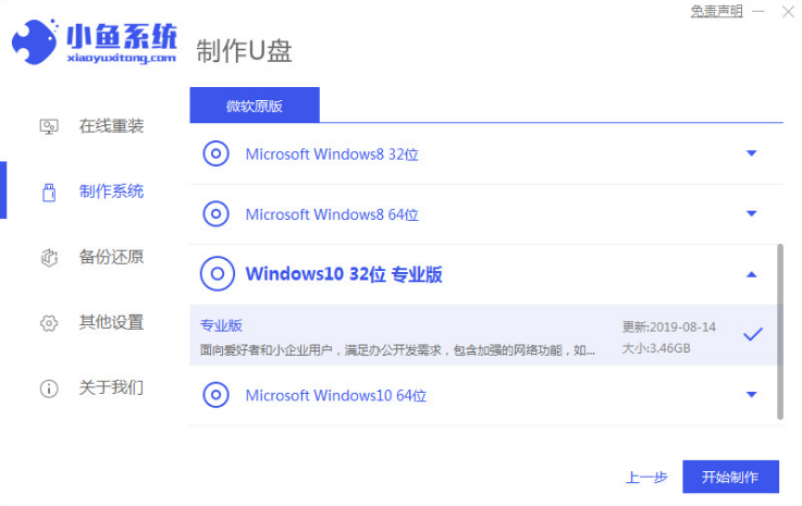 2、選擇我們需要安裝的電腦系統,單擊開始制作。