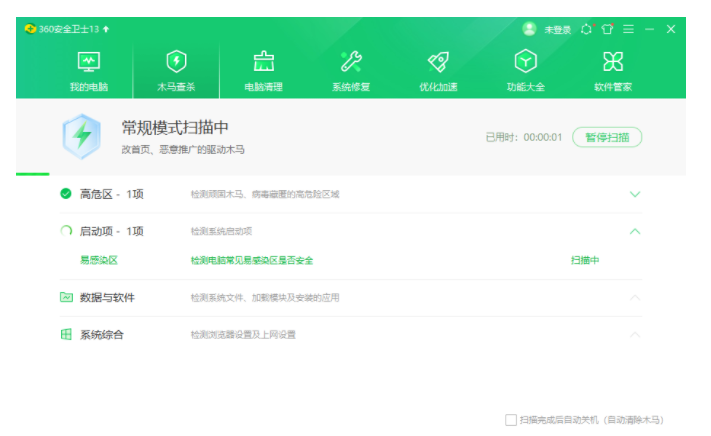 2、等待自動檢測電腦中的病毒。