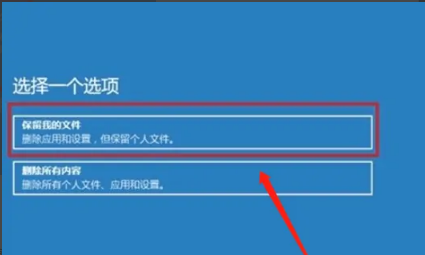 3、按住Win鍵+R鍵之后輸入systemreset,點擊確定后直接進入選項頁面,選擇「保留我的文件」。