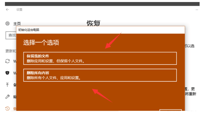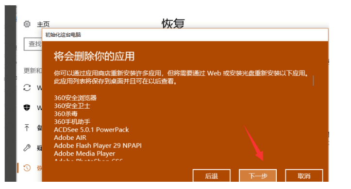 5、選擇需要重置的范圍,是否保留個人的資料文件,只刪除應用和設置菜單;