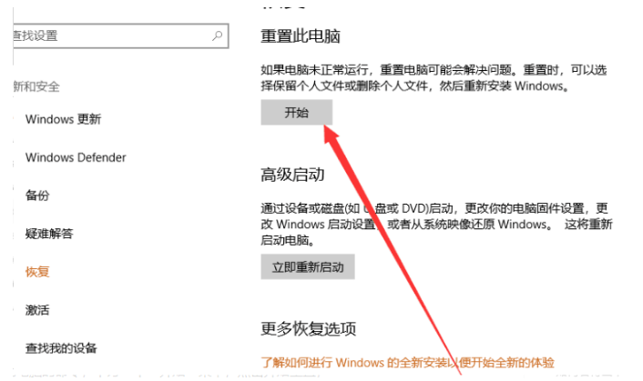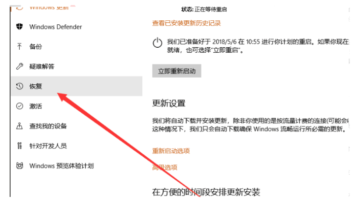 3、選擇會出現一個“恢復”的命令,點擊對電腦設置進行恢復;
