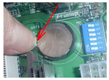 4、主板靜電也會引起的無法開機,此時,你可以嘗試將主板主板cmos電池摳除,用金屬物件短cmos電池引腳,放電之后,復裝電源,然后再開機嘗試故障是否解決。