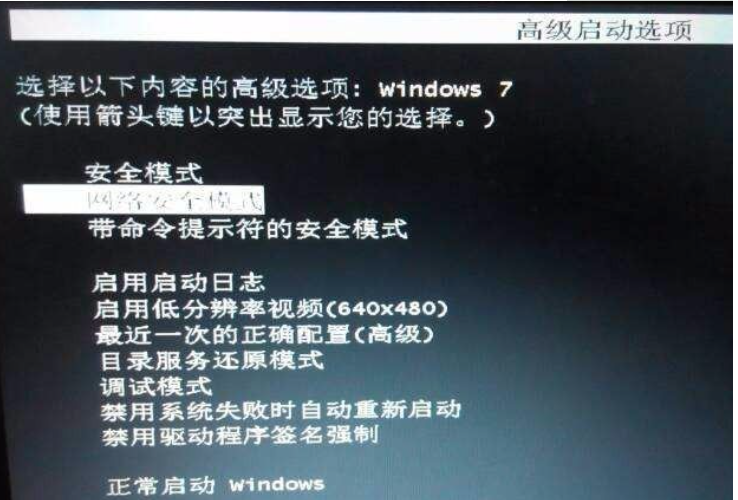 3、電腦重啟之后我們同時一直按住鍵盤的F8鍵,電腦就會進入高級啟動選項界面,此時用鍵盤的上下鍵,選擇“最后一次的正確配置(高級)”,那么電腦就會從上次的正常開機啟動電腦。