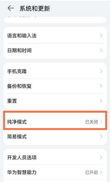 以上便是華為應用市場怎么關閉純凈模式的方法,只需要在手機設置中先點擊系統與更新,再在子頁面點擊純凈模式即可完成,有遇到問題不知道該如何操作的網友,可以跟尋教程操作實現。