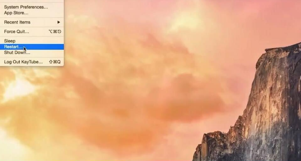 4、點擊左上角蘋果標志,點擊重啟(Restart)即可。