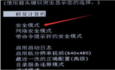 2、方向鍵選擇“安全模式”,按回車(enter)。