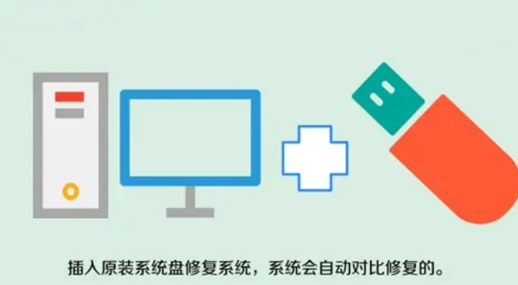 2、插入原裝系統盤修復系統,系統會自動對比修復的。