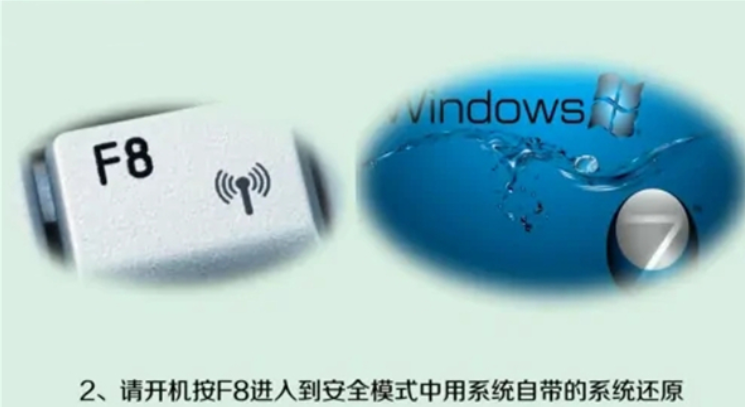 1、開機按“F8”進入到“安全模式”中,用系統自帶的系統還原。