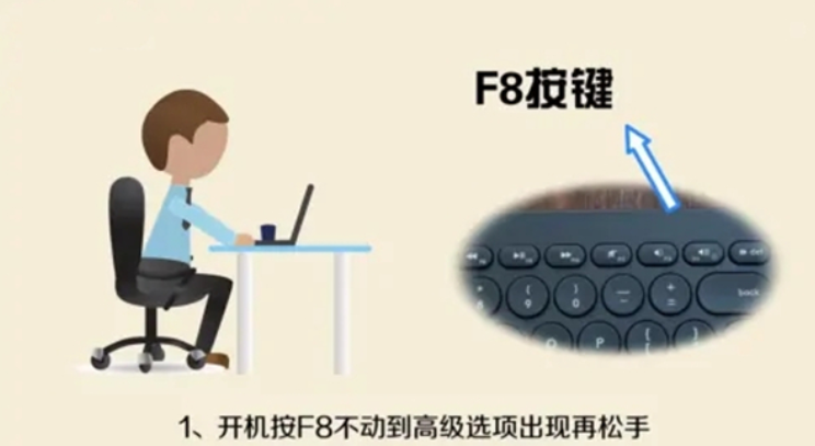 1、開機按“F8”鍵不動到“高級選項”出現再松手。