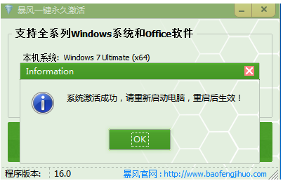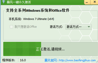 3、暴風激活工具將會自動開始激活win7旗艦版操作系統,我們可以在軟件頁面的下方看到激活進度。