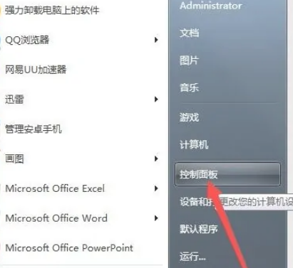 1.首先,我們點擊電腦左下角的開始菜單,然后單擊控制面板,進入win7系統控制面板主界面。