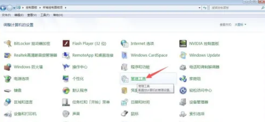 2.在進入win7系統控制面板主界面后,點擊【管理工具】,進入win7系統管理工具主界面。