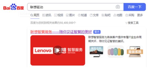 1、首先,用戶需要打開自己的瀏覽器輸入關鍵詞“聯想驅動”即可打開聯想官網;