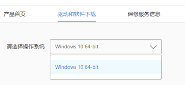 4、打開后切換上方選項到“驅動和軟件下載”,點擊下拉符號找到你使用的系統型號;