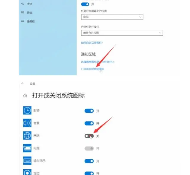 2、點擊打開或關閉系統圖標,打開網絡圖標,如圖: