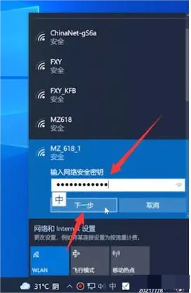 5、輸入WIFI密碼,點擊下一步,如圖: