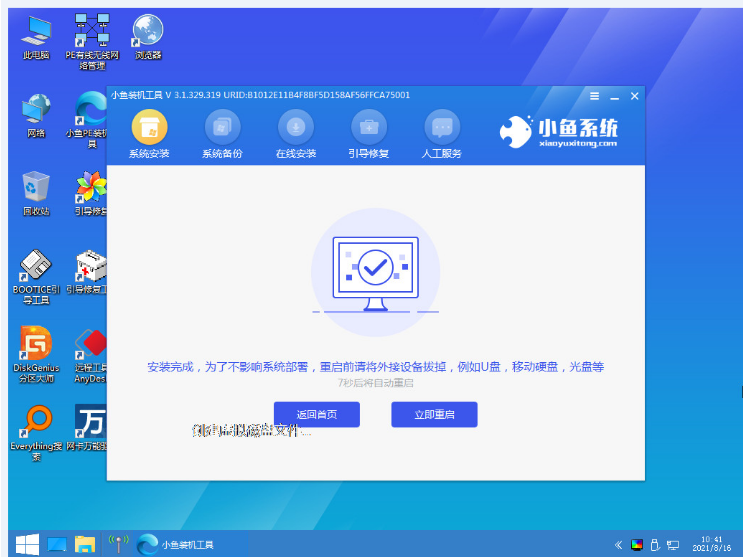 6、重啟電腦之后進入pe系統中,軟件將會繼續安裝win10系統。