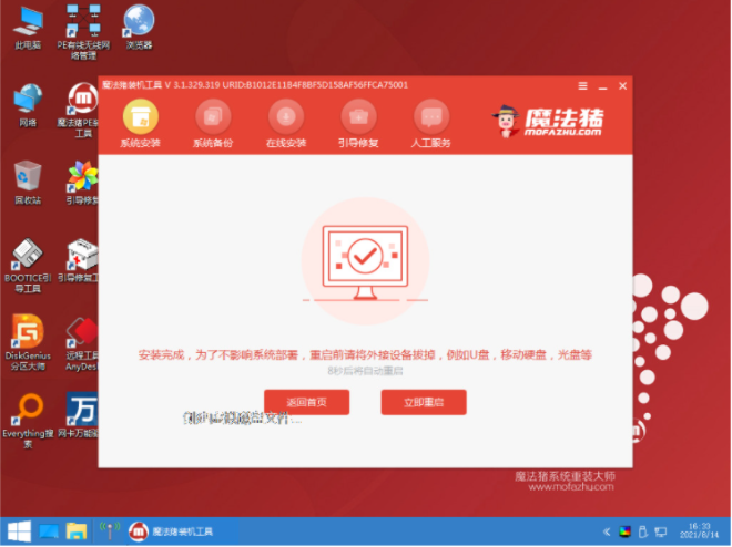 4、等待系統自動安裝,安裝完成后,點擊立即重啟即可正常使用。