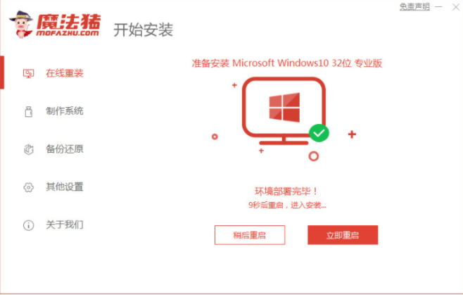 4、系統安裝部署環境完畢之后,點擊立即重啟。
