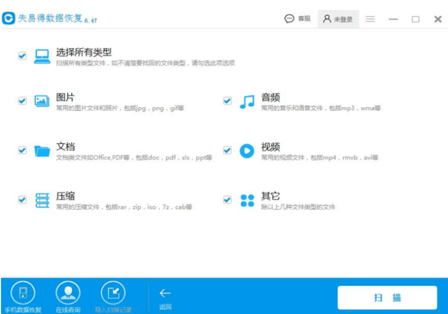 第三步:選擇我們要恢復的文件,然后點擊進行掃描。