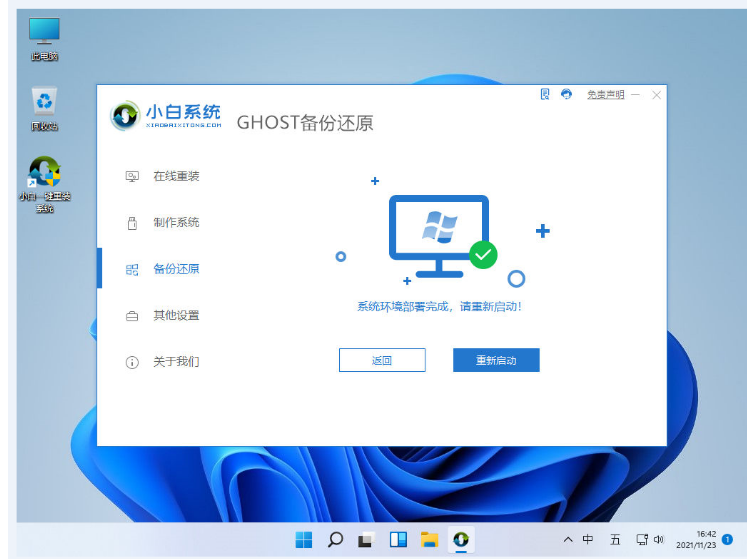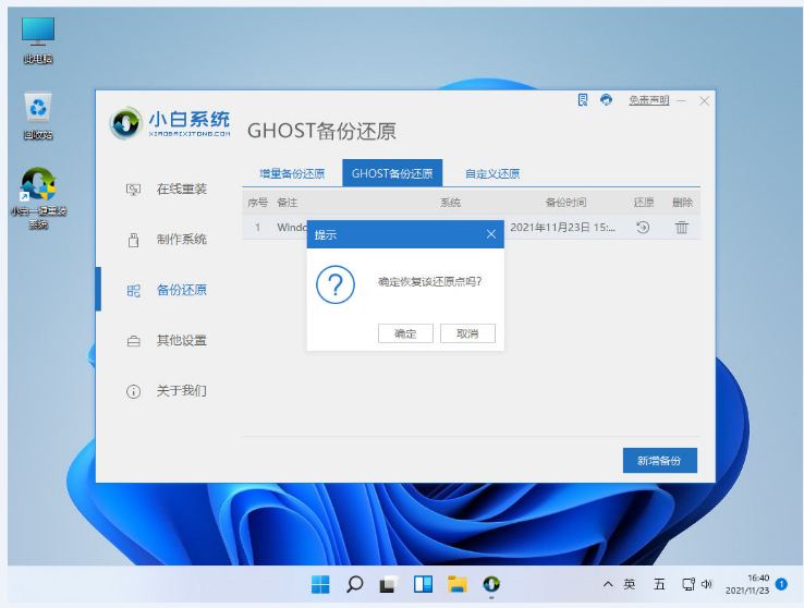 如果我們已經用小白重裝了新系統的話,就不可以還原回原來的舊系統了哦。如果大家還是想用小白系統還原系統的話,下面介紹下使用教程: