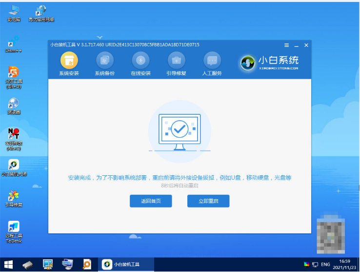 7、軟件提示系統安裝完成之后,再次點擊立即重啟電腦。