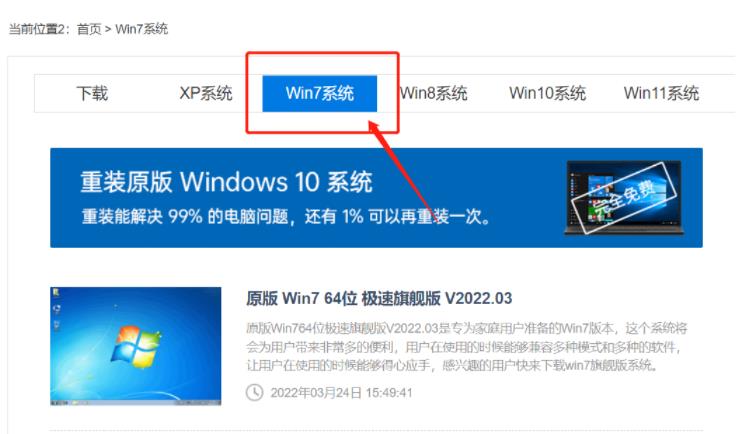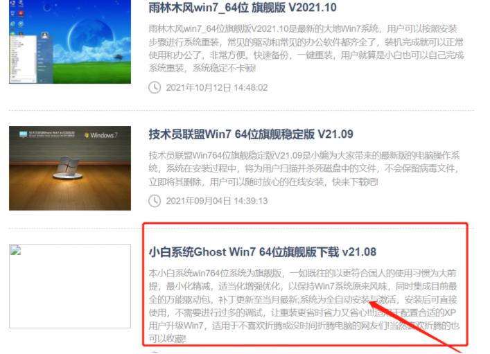 進入下載界面,點擊小白系統ghost Win7 64位旗艦版本。