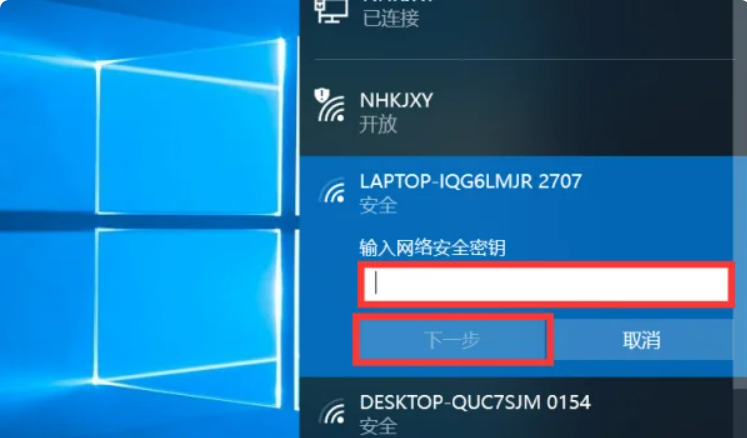 4、然后再出現的框內輸入該wifi的密碼,然后點擊下方的“下一步”,然后就可以連接完成了。