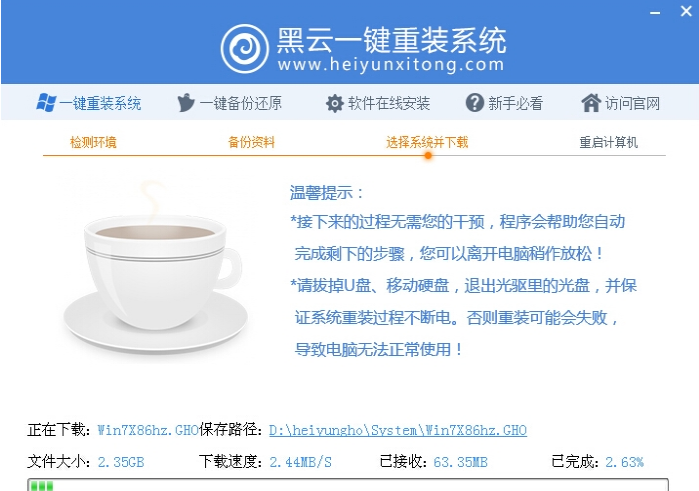 黑云一鍵重裝系統失敗以后再次重裝的操作