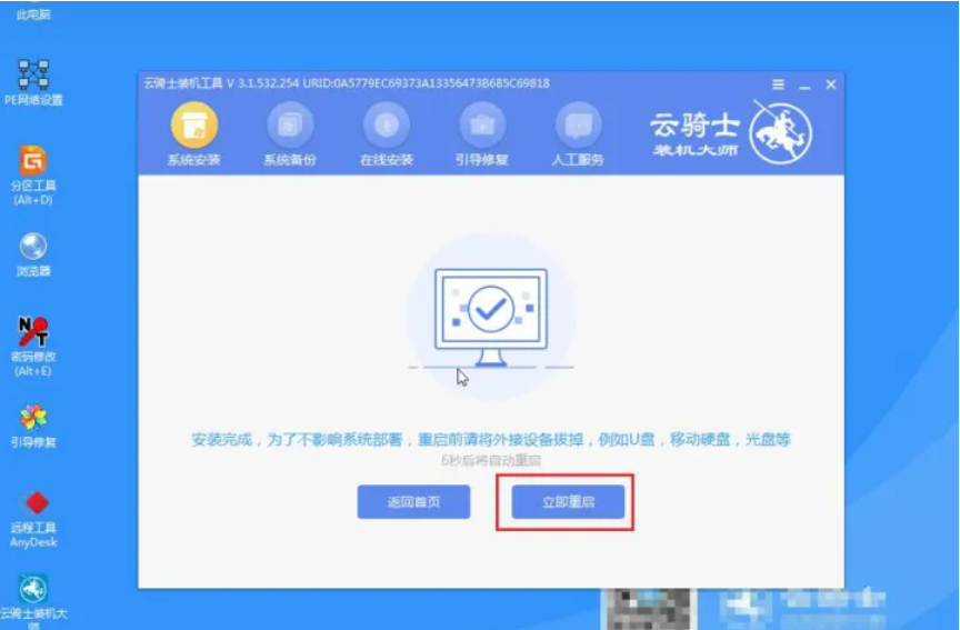 10、安裝完成后,拔除U盤,點擊立即重啟。